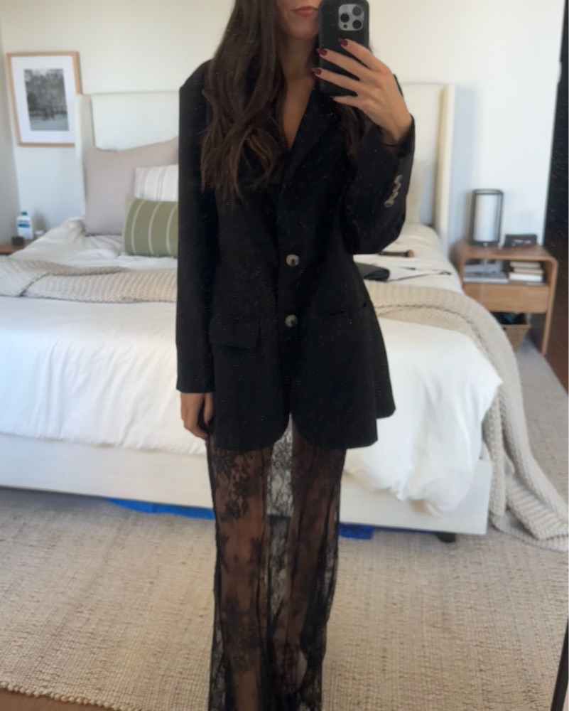 Sheer Black Lace Skirt & Oversize Blazer