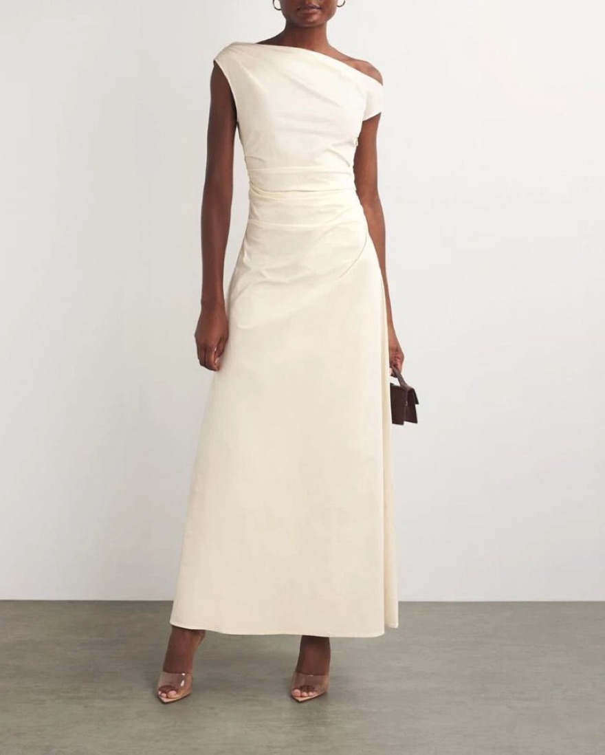 Elegant One-Shoulder Ivory Dress