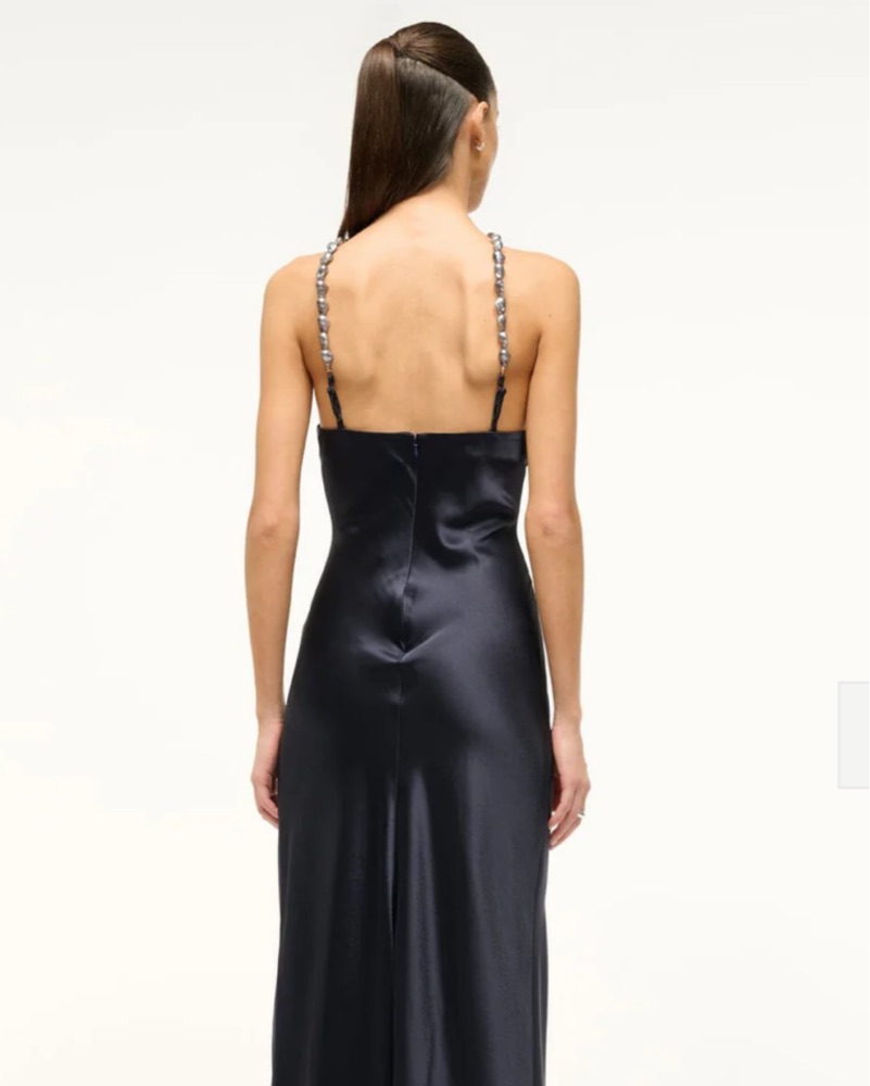 Staud Navy Satin Maxi Dress