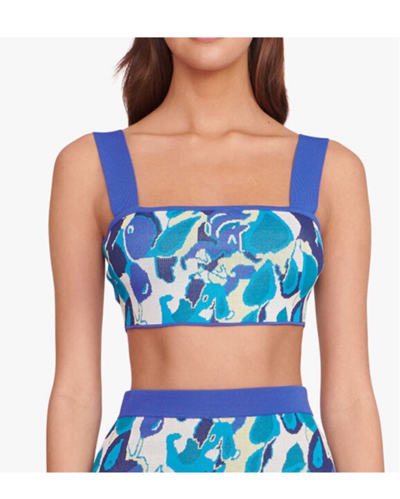 STAUD Zola Multicolor Blue Knit Crop Top