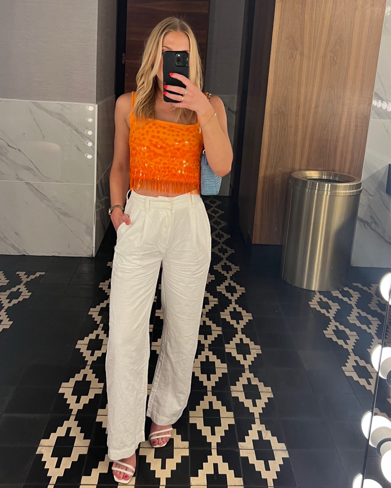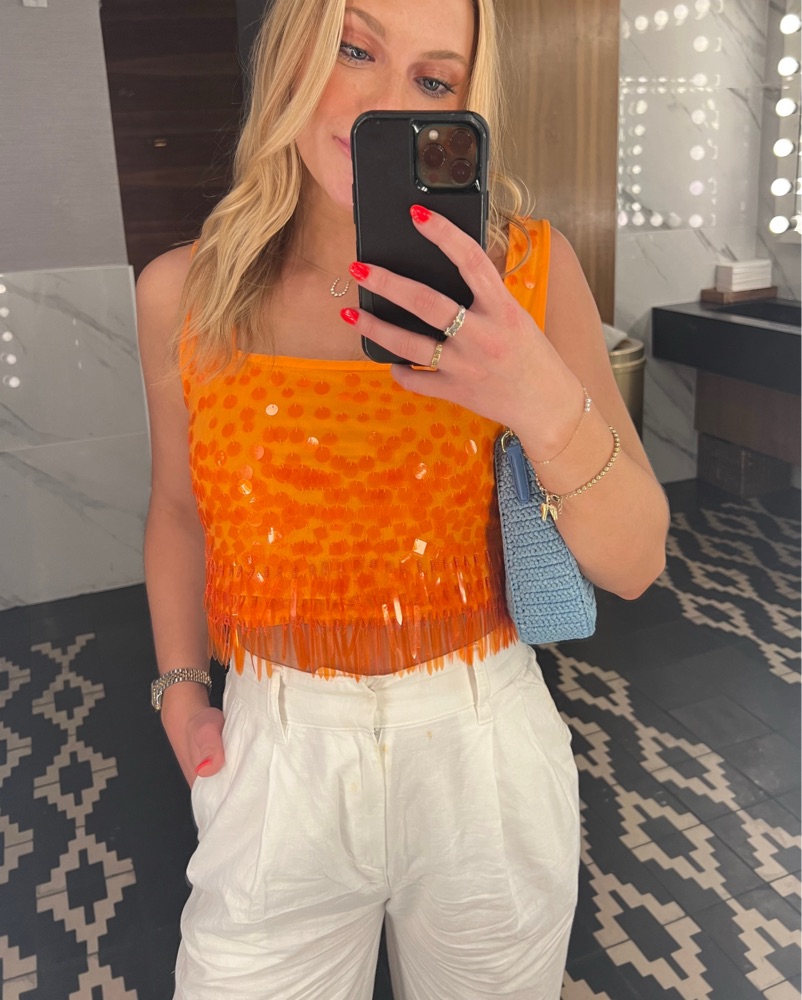 Staud Orange Fringe Top