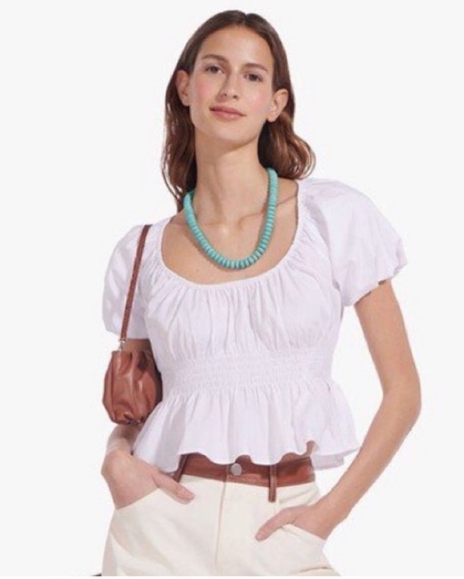Staud Lucia Smocked Poplin Top