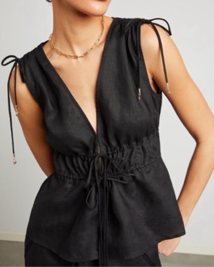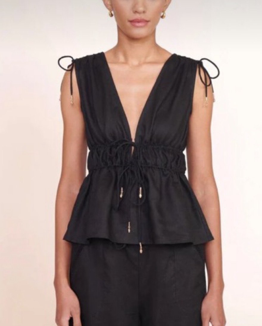 Staud Black Linen Top