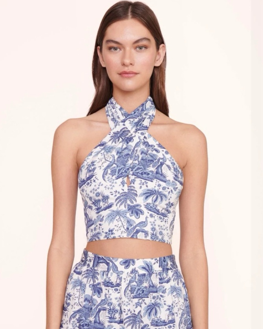 Staud Blue Toile Halter Top