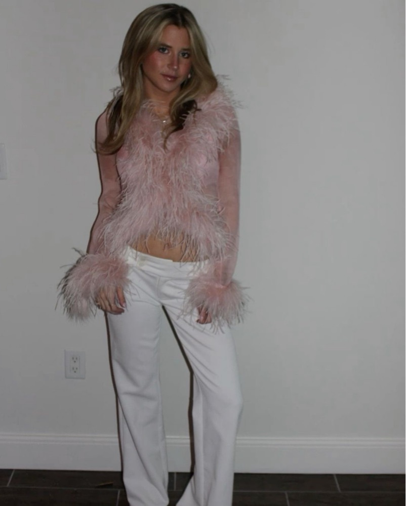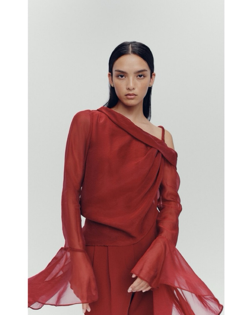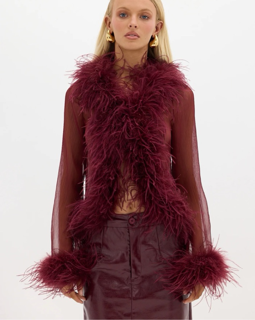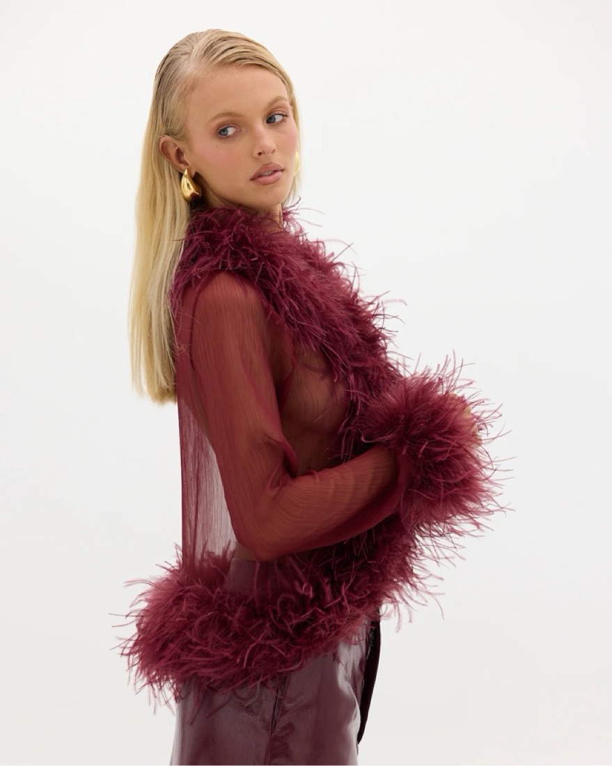 Bubish Sheer Feather Blouse Cherry