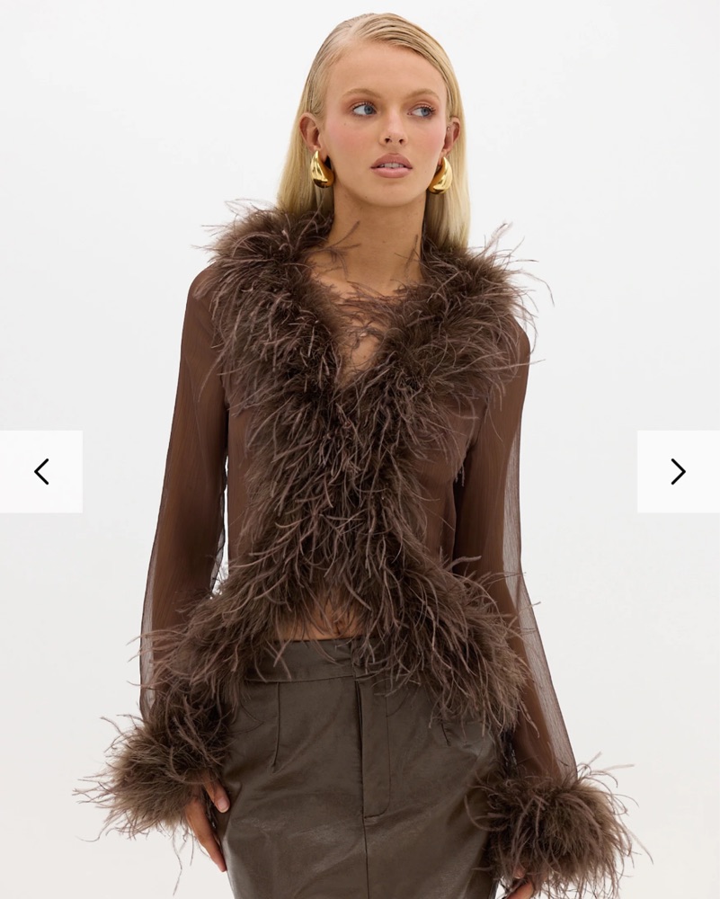 Bubish Gigi Sheer Feather Blouse - Choco