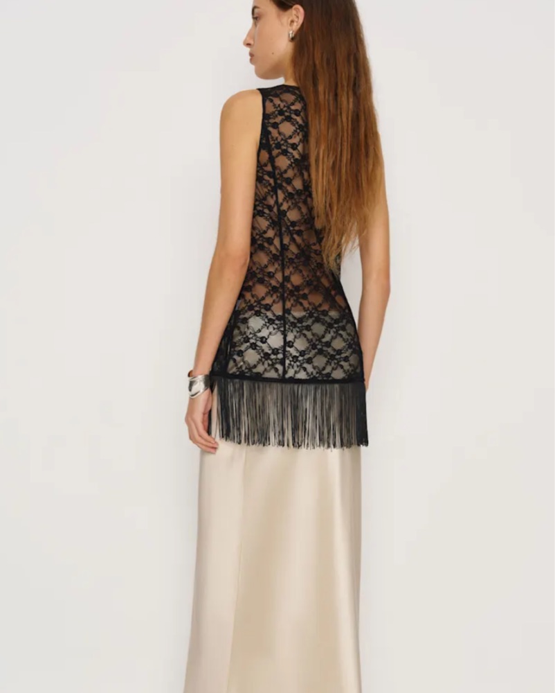 Reformation Gabrielle Fringe & Lace Top