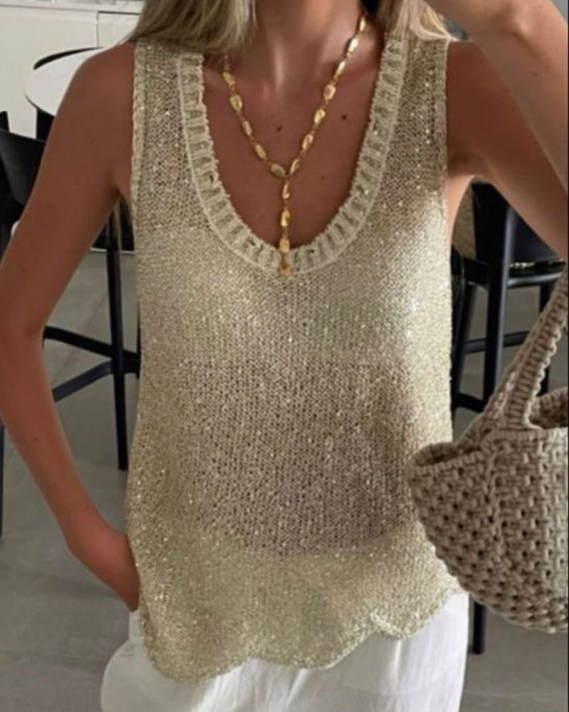 Golden Sequin Crochet Tank Top