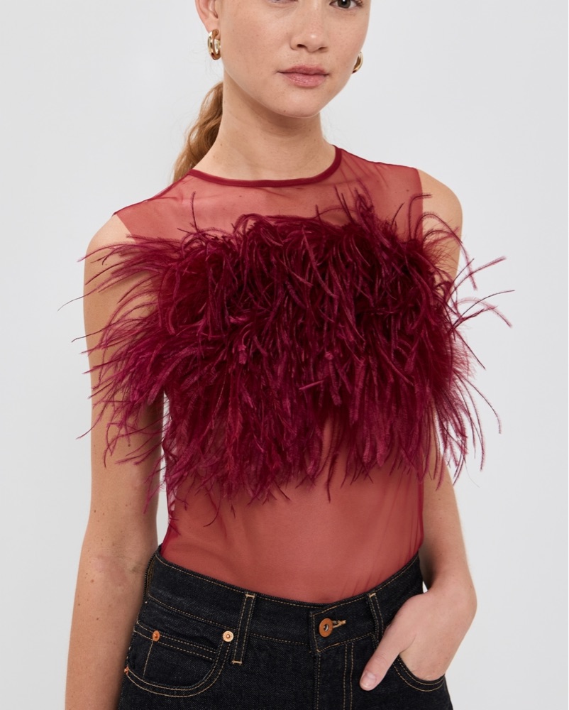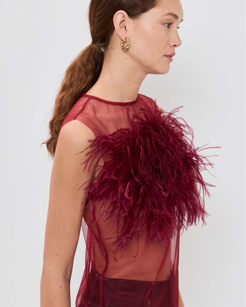 Bubish Sheer Feather Blouse Cherry