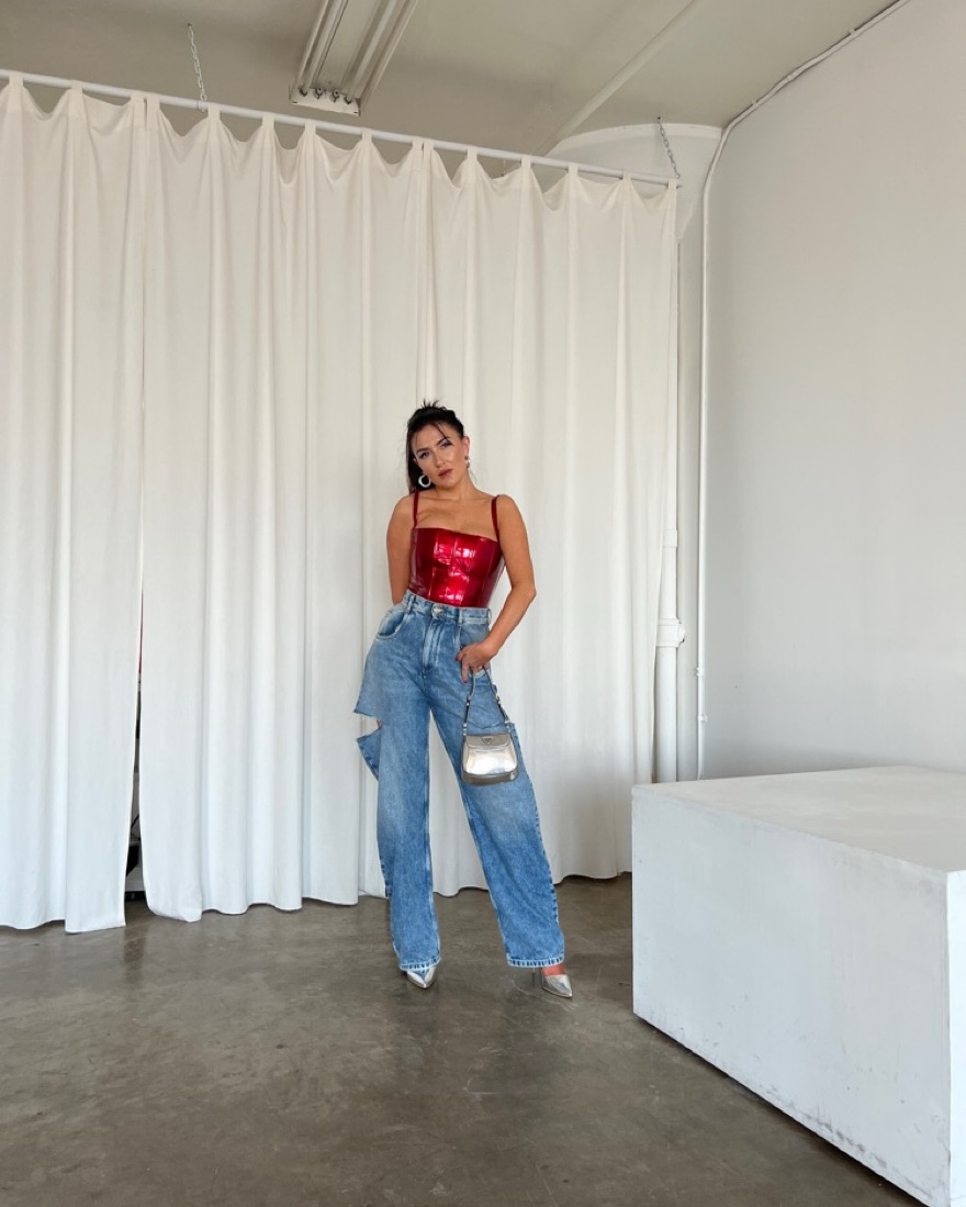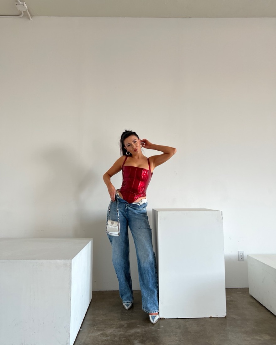 With Jean Red Top