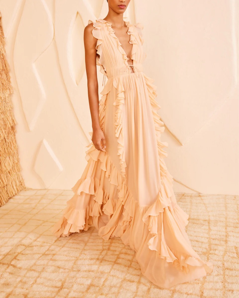 Ulla Johnson Peach Ruffle Gown