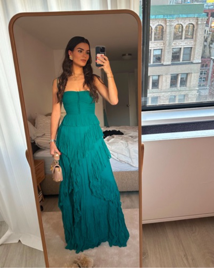 Turquoise Ruffle Silk gown ULLA JOHNSON