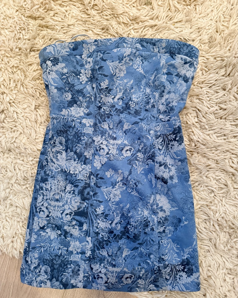 Blue Floral Strapless Mini Dress