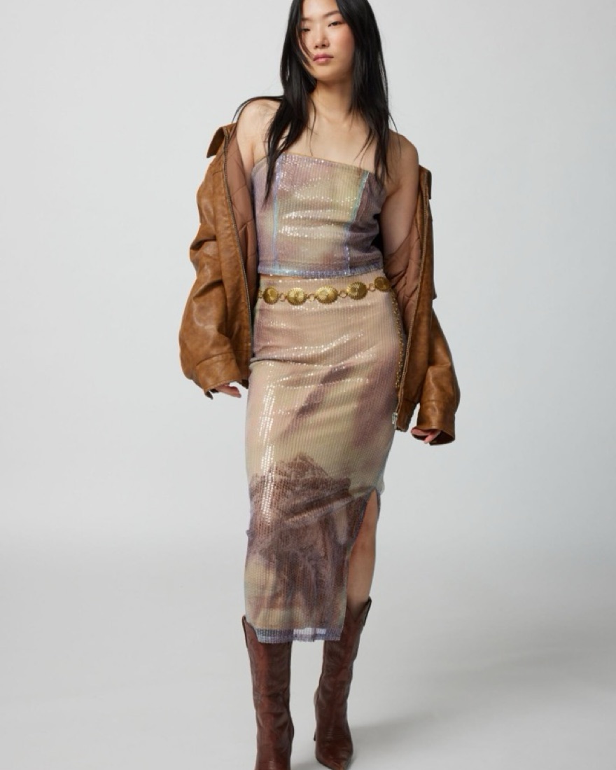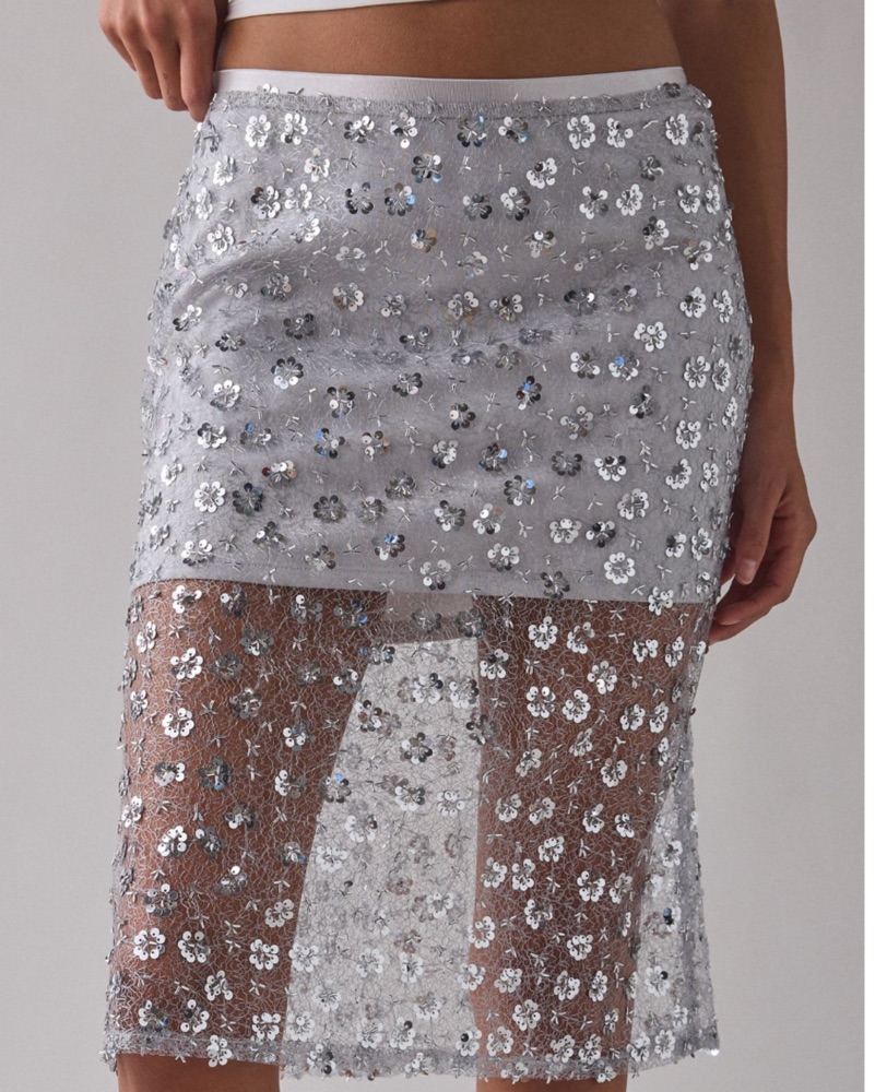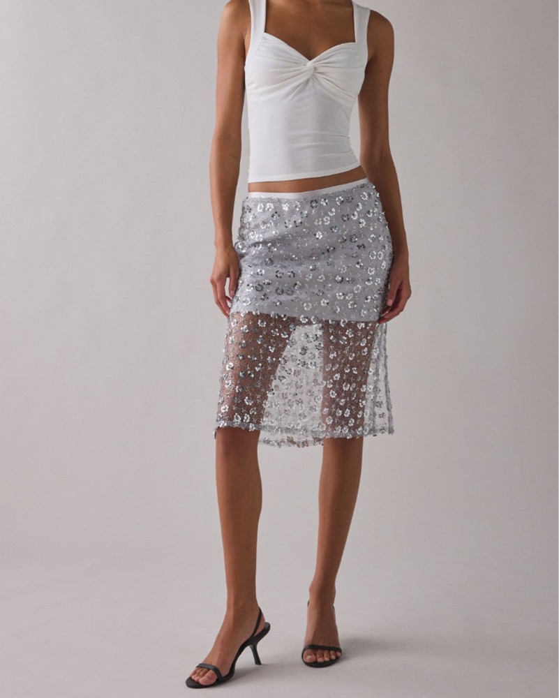 Sheer Sequin Midi Skirt