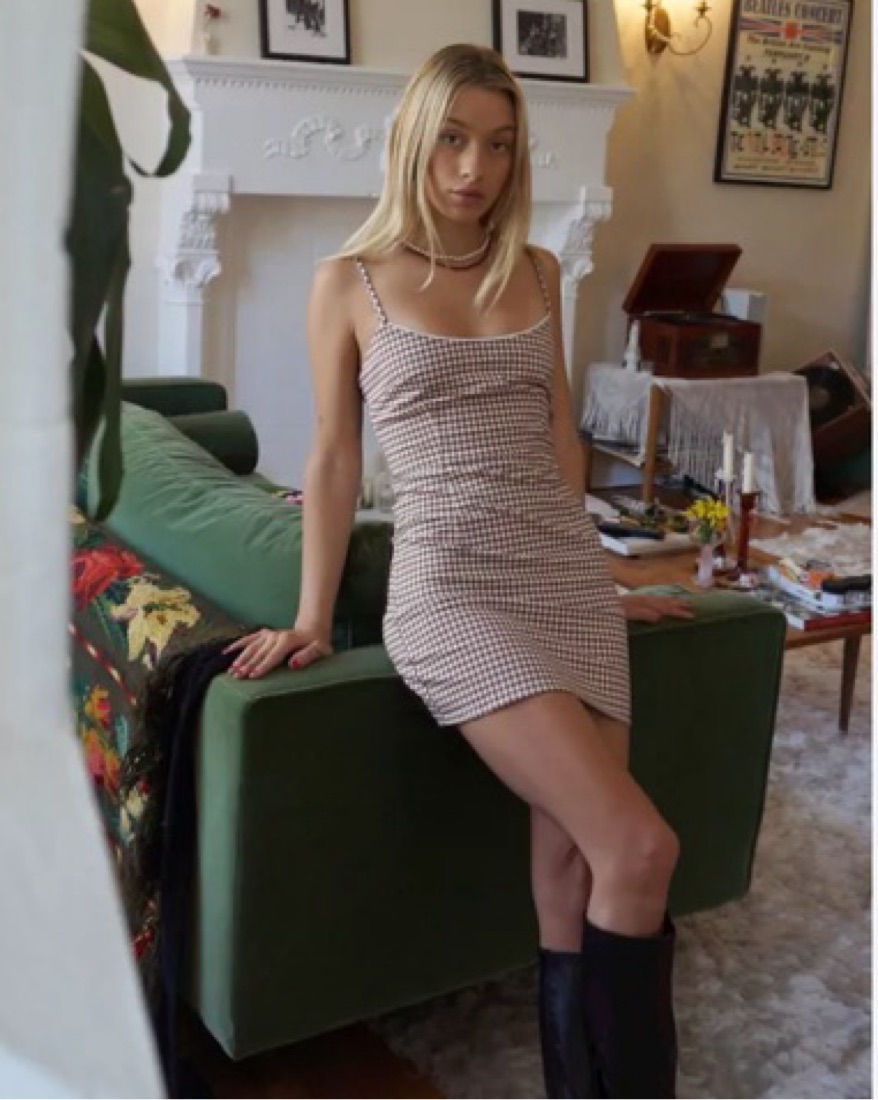 Brown Gingham Mini Dress
