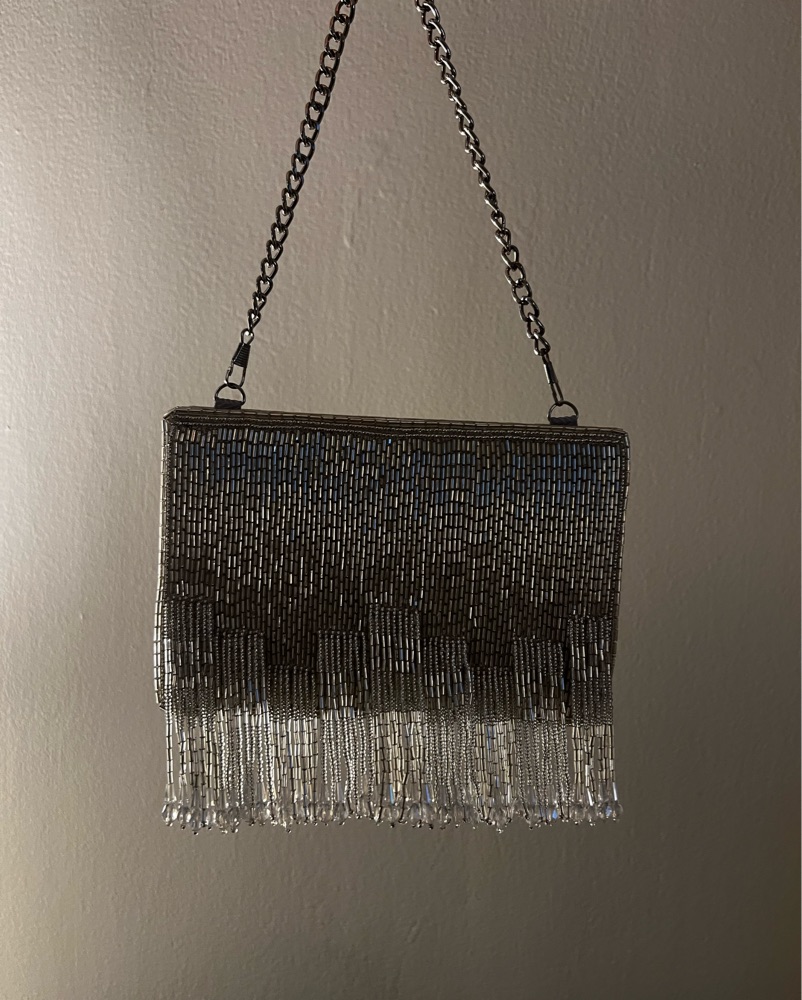Vintage Fringe Beaded Clutch -With Strap