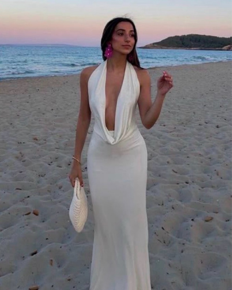Elegant White Halter Maxi Dress