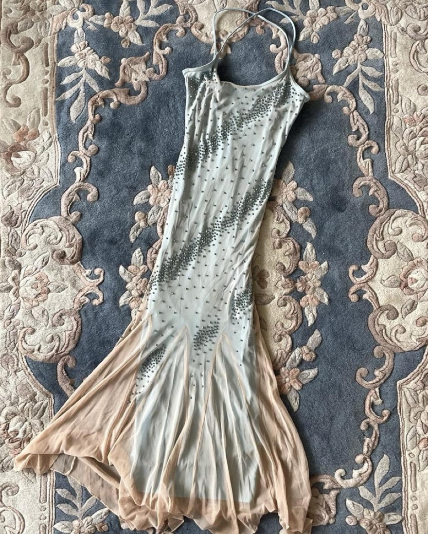 Vintage 90s Mermaid Style Beaded Dress