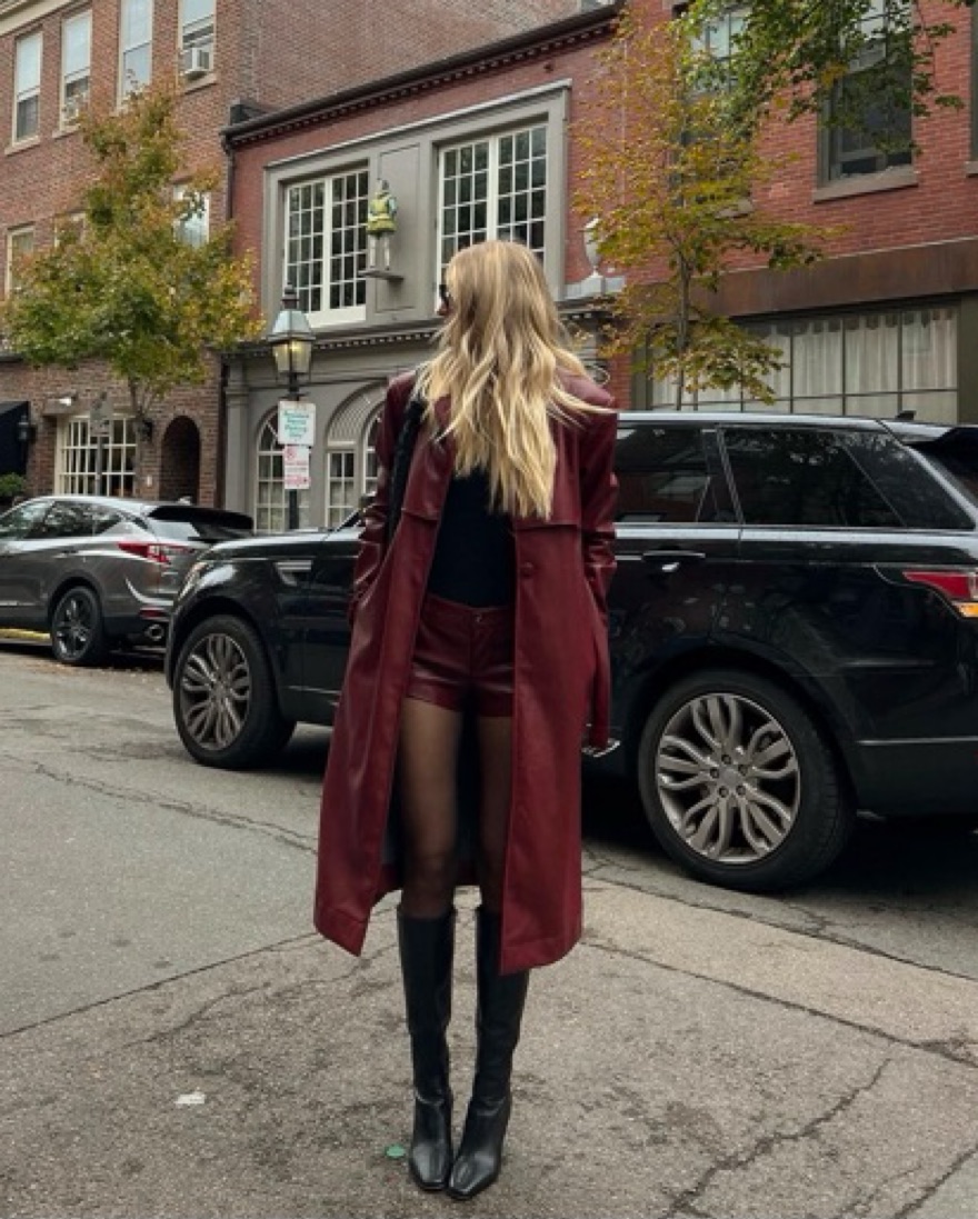 Burgundy Faux Leather Trench Coat