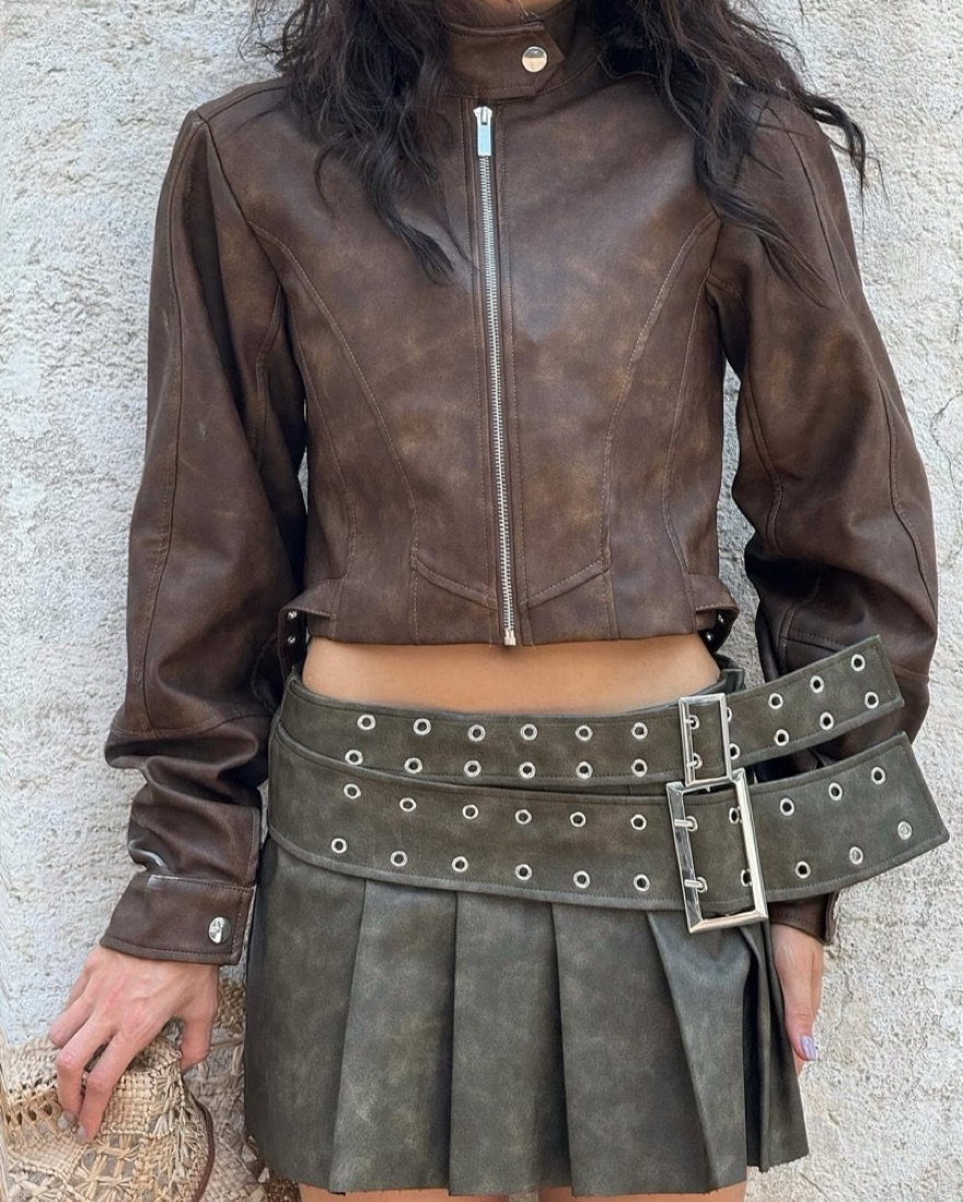 Cropped Faux Leather Moto Jacket