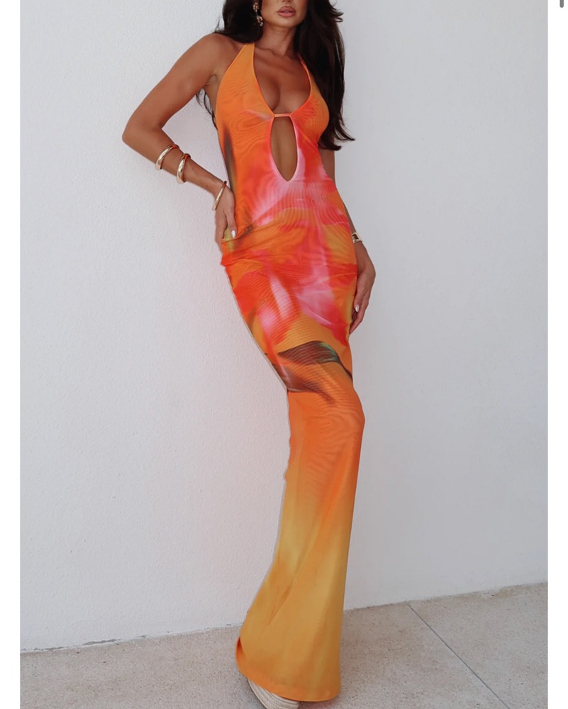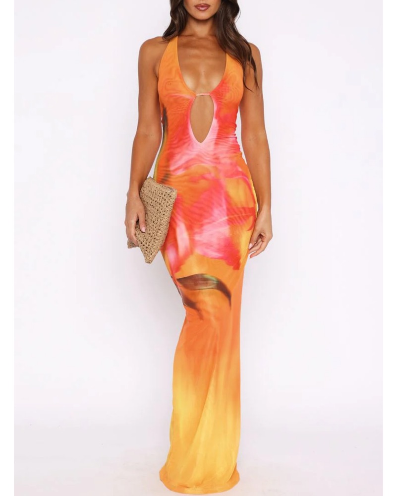 Vibrant Tie-Dye Halter Maxi Dress