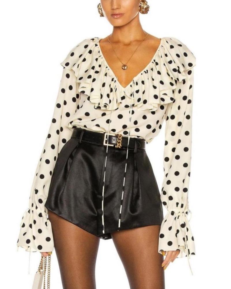 SAINT LAURENT Ruffle Polka Dot Blouse