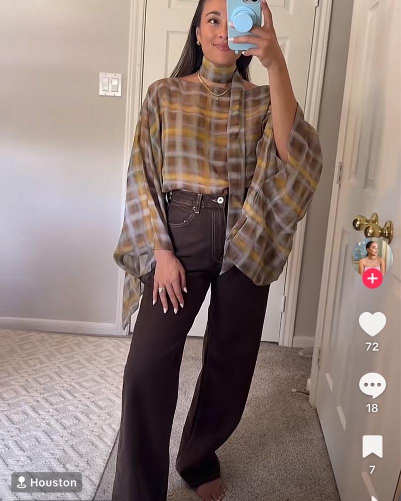 VIRAL ZARA PLAID SCARF CAPE TOP