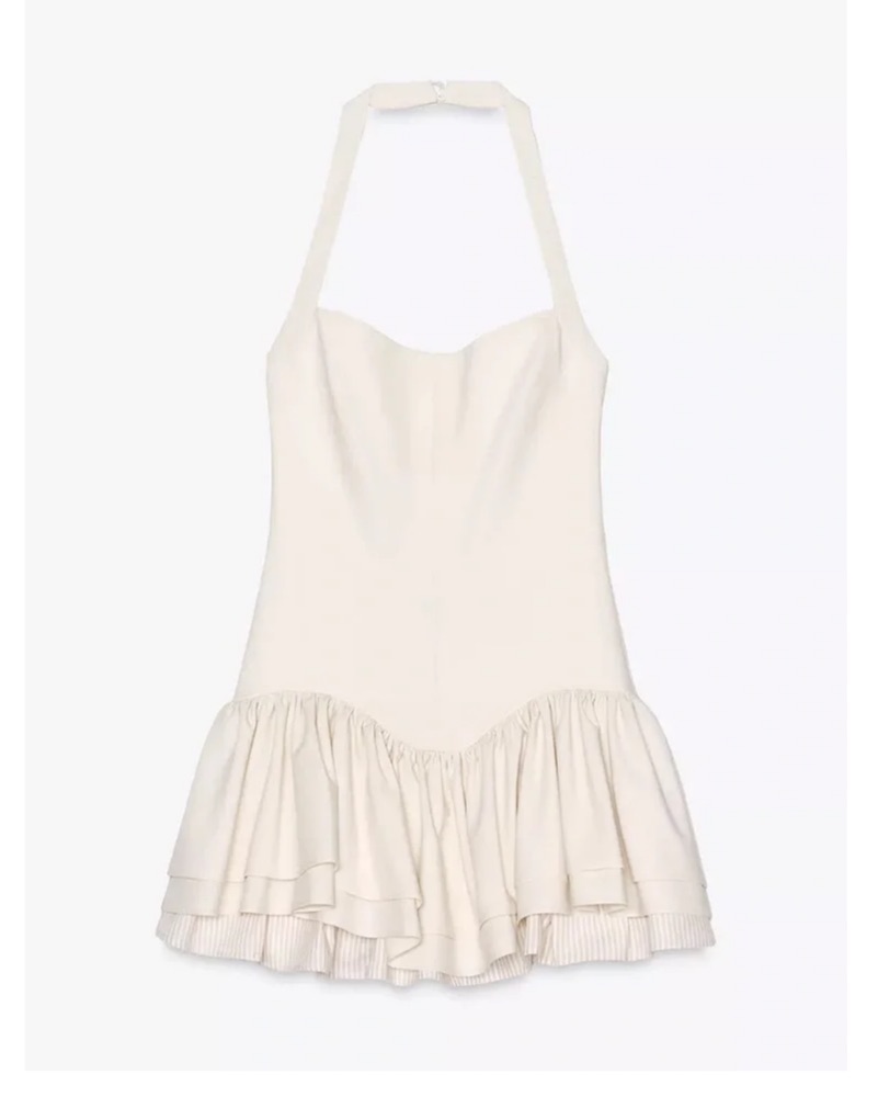 Zara Creme Lace Halter Mini Dress